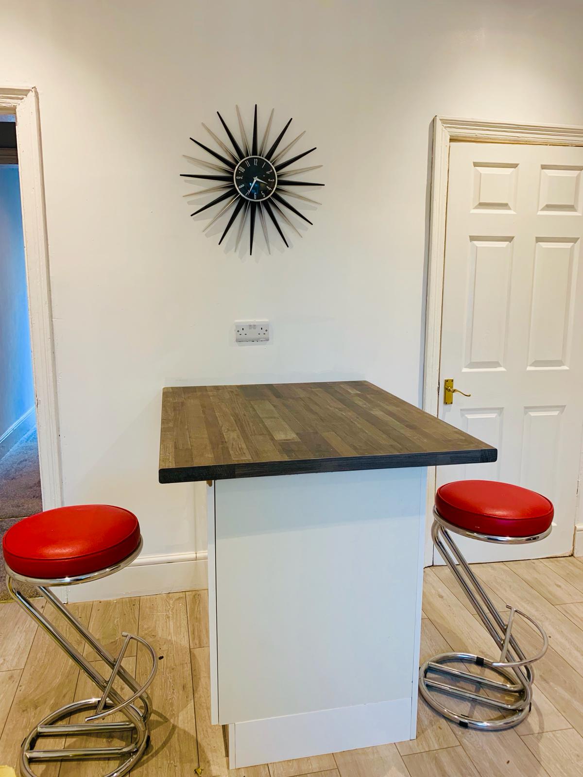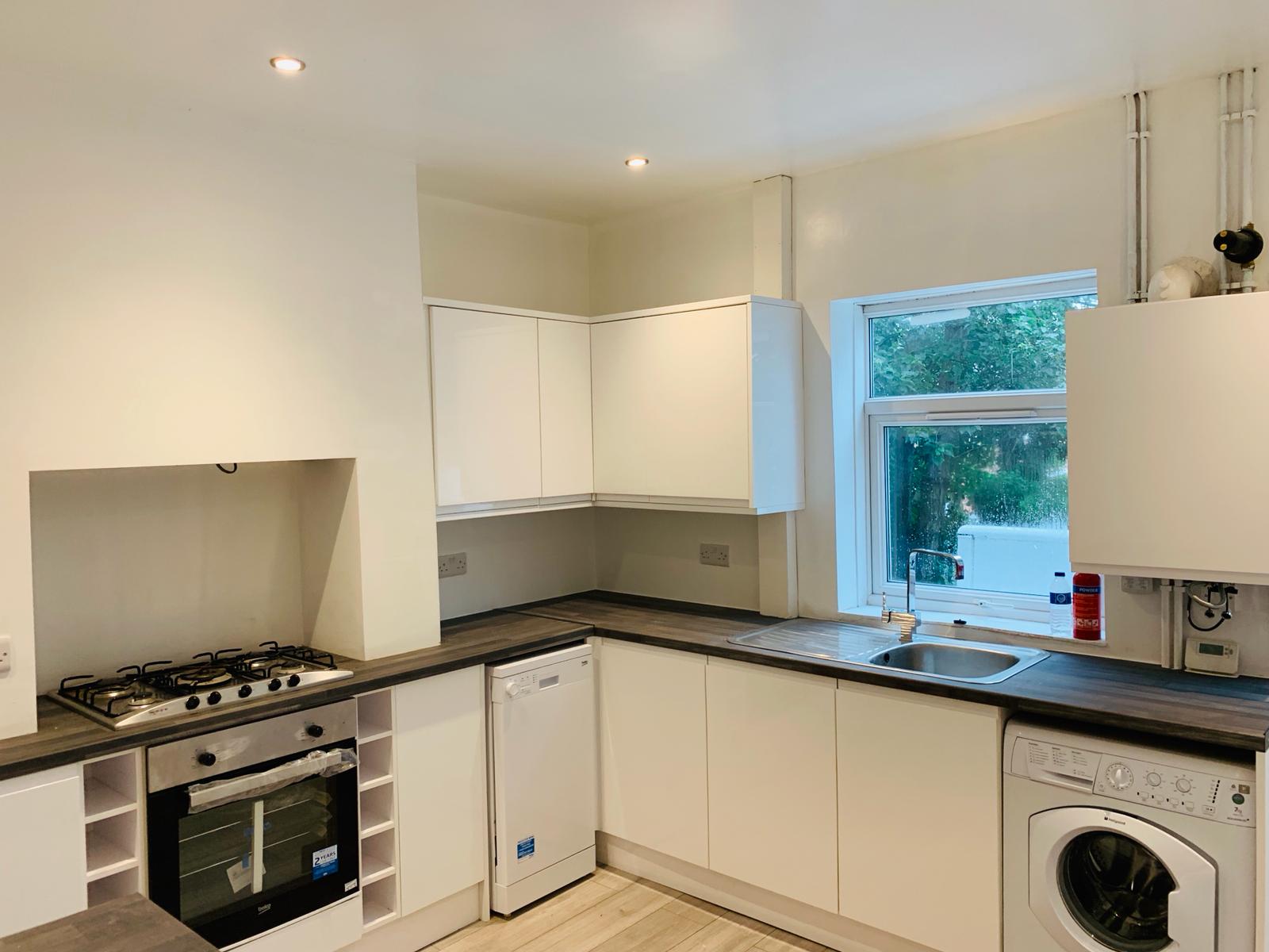 The refurbishment took around three months in total. It was a big job including full rewiring, full replastering, loft reinforcing, new heating system, new kitchen and bathroom, new carpets and complete internal redecoration.
